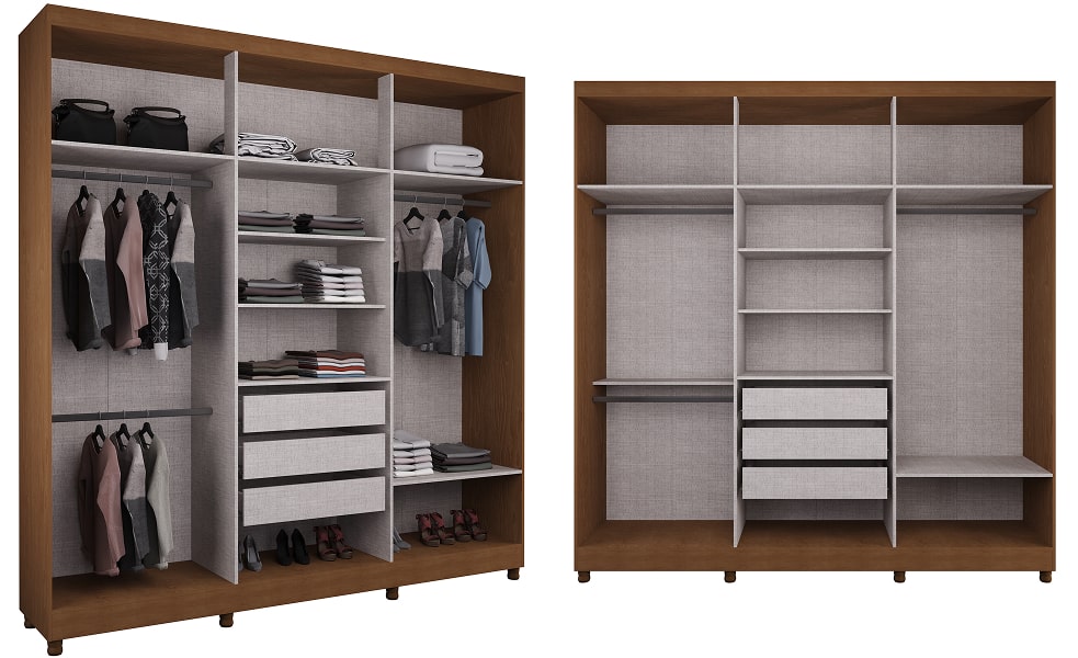 As gavetas são indispensáveis para separar roupas íntimas, acessórios, meias e até roupas de academia. Quando estão bem-posicionadas, facilitam o dia a dia e evitam a bagunça dentro do guarda-roupa.